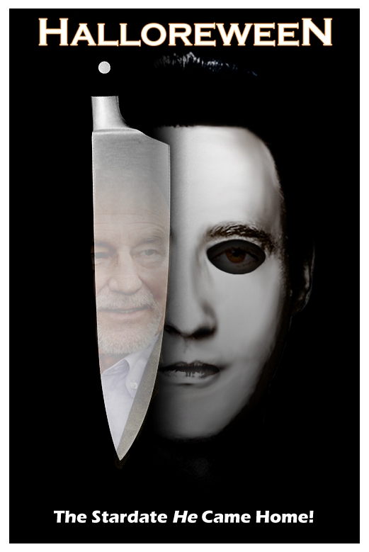 As for the image of Patrick Stewart in a rather non-Picard outfit, I decided that I wanted him to look more like Donald Pleasence’s Dr. Sam Loomis than his TNG counterpart. For a nanosecond, I considered going with Malcolm McDowell as sort of a Dr. Soran/New Dr. Loomis crossover. But then I remembered my anger toward McDowell’s Loomis and quickly kaboshed that idea. Besides, we all know that Sir Patrick is the best choice anyway, right? Right.