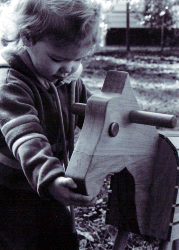My little rocking horse still exists. He made a circuitous path through our family after I outgrew him, spending some time with one of my cousins before finally making his way back to his maker. He now resides in my aunt’s attic. His rockers are a little worse for the wear, having been chewed by the various dogs that have completed our packs over the years. I sometimes have a thought that I’d like to have his head mounted and hung on my wall. Then I realize how creepy and Godfather-esque that sounds. So I’ll be content with this photograph and my silly memories.