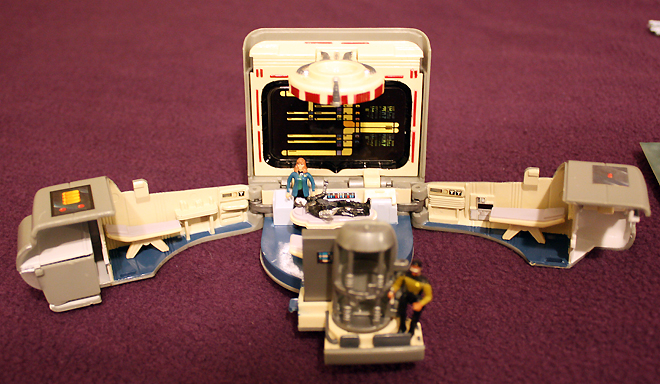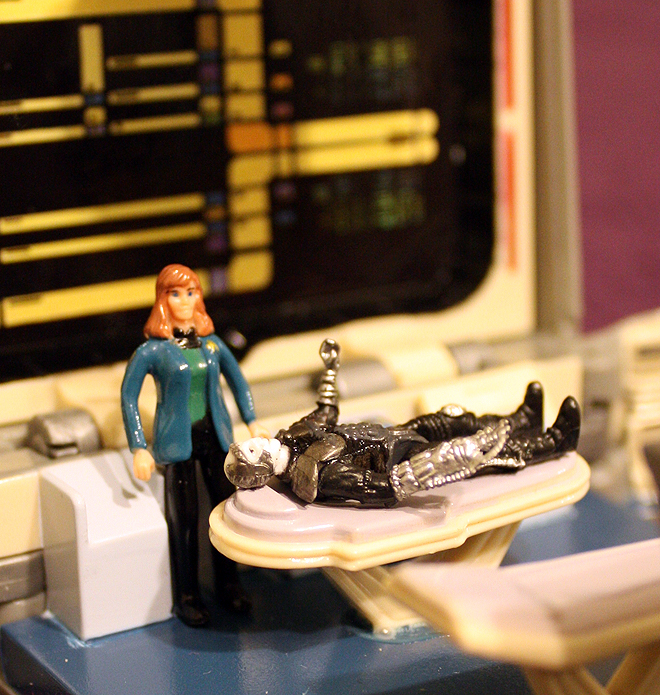 Isn’t that one of the greatest things EVAR? It’s a medical tricorder that transforms into Dr. Crusher’s sickbay, complete with little figures of Dr. Crusher, Geordi, and Captain Picard as Locutus of Borg.