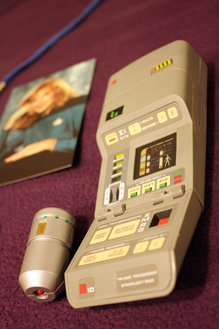 Very few people, I think, knew that Playmates released a medical tricorder in addition to the standard one. I own both, but really, I only bought the regular tricorder because I didn’t think they’d actually release one like Dr. Crusher used. They’re both quite cool when all lit up and running their sounds. Playmates did a lot for the Trek geek on a budget, releasing pretty impressive replicas for reasonable prices.