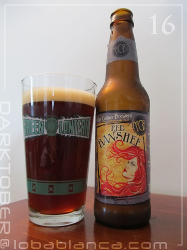 [Loba Tangent: Ah, this is one that I haven’t mentioned yet this Darktober: lacing. It’s what beer nerds call the residue that the frothy head leaves along the inside of the glass as you drink your beer. I haven’t really dwelt on this term before now because it hasn’t really been a noteworthy thing with the other beers I’ve reviewed. However, Red Banshee’s tightly packed cushion of bubbles left an amazing trail of lacing all over this glass. Thus, this tangent.]